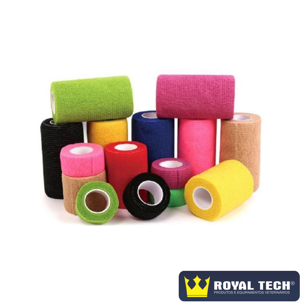 Bandagem elástica, auto aderente, não necessita de grampos ou fitas adesivas. Leve, porosa e confortável, suporta os movimentos do animal sem afrouxar.